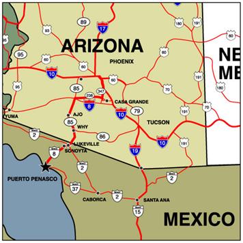We take a charter bus to Puerto Peñasco, which is a town on the coast, an hour away from Sonoyta. We had to go there since there wasn't a direct bus to Sonoyta since it is quite smaller and yeah...Along the ride we have quite a few stops. One of which was a check point where we all had to get off the bus and run our bags through X-ray machines, looking for drugs I guess? We had 2 or 3 more along the way, but we didn't have to get off. Just National Guard looking people came on and walked around looking for suspicious people I guess?